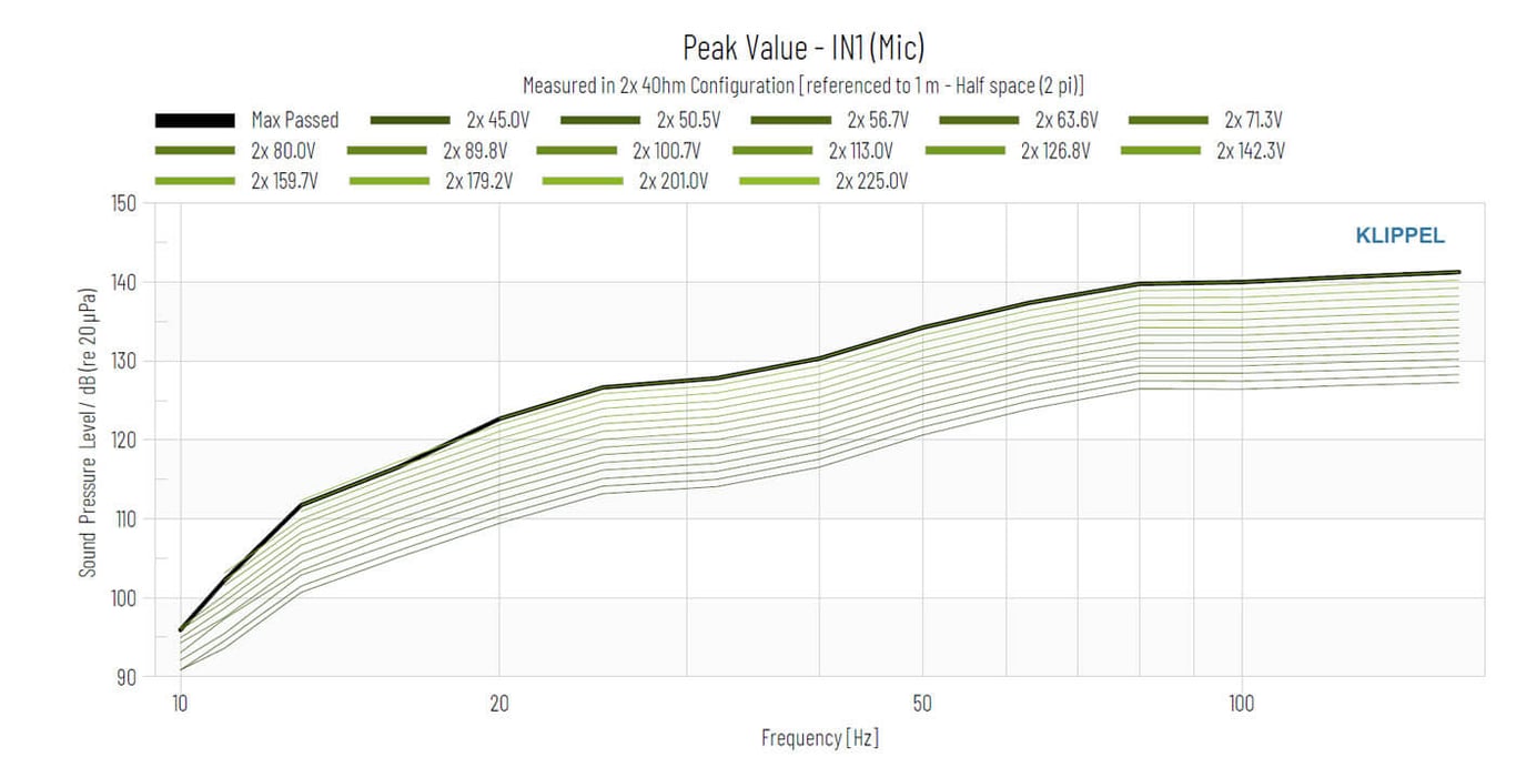 Excursie Xmax de 22mm pe fiecare direcție (44 mm liniar), bobina de voce rămânând în câmp magnetic omogen |