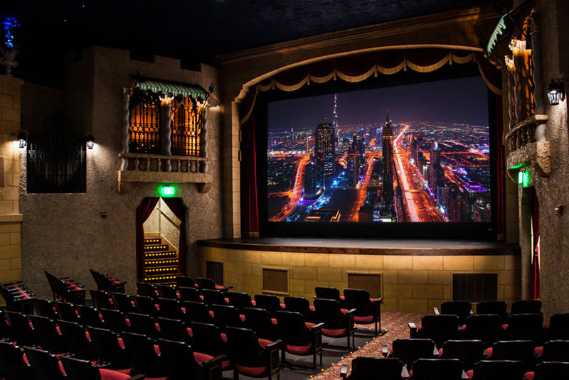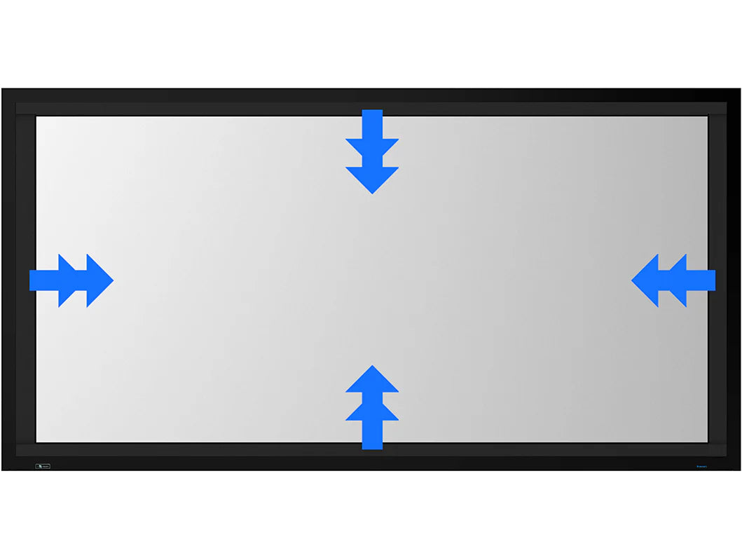Ecranul Director's Choice vă permite să prezentați conținutul la scara care arată cel mai bine. Mascarea în 4 direcții va urma perfect intenția dvs. Dacă aveți un film clasic în format Scope care pare granulat când este afișat pe toată lățimea, îl puteți micșora și masca la o dimensiune care funcționează bine vizual. Deciziile critice de conținut sunt întotdeauna făcute în rezoluție pixel cu pixel. Director's Choice garantează că ecranul dvs. este formatat corect indiferent de ce. Și cu adâncimi ale cadrului de la 17 inch la 11 inch, Director’s Choice se potrivește dimensiunilor fiecărei locații.