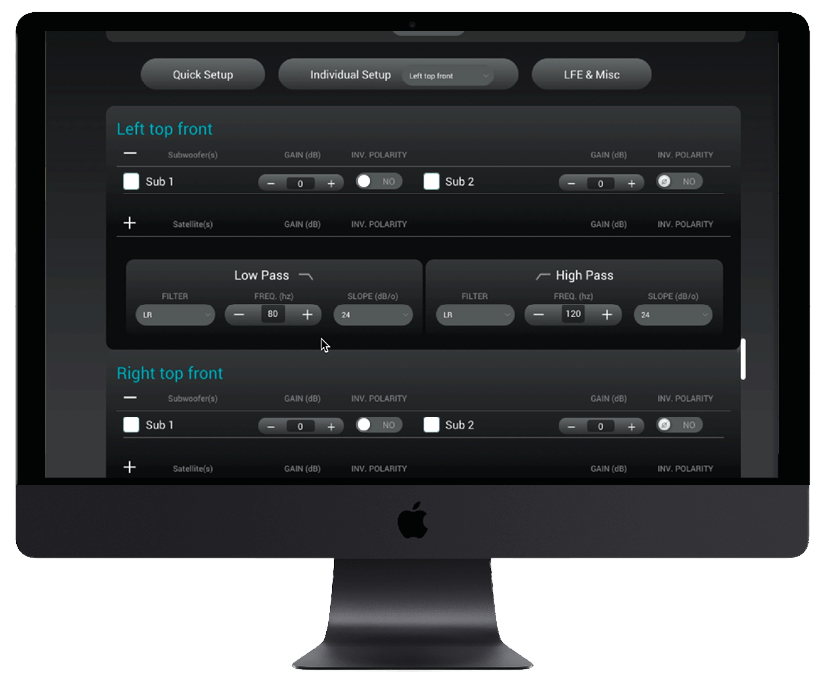 Mergând mai departe, sistemul nostru unic de management intermediar al basului este ideal pentru sistemele imersive care folosesc difuzoare de canal de înălțime mai mici. Poate redirecționa frecvențele joase nu doar către subwoofere, ci și de la un difuzor cu capacitate de bas limitată către cel mai apropiat difuzor mai capabil, înainte de a trimite frecvențele cele mai joase către subwoofere.