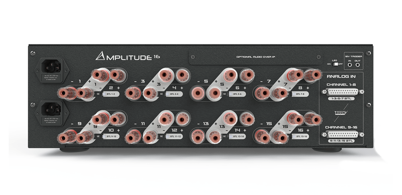 Anticipând aplicațiile avansate viitoare, o altă caracteristică unică a Amplitude16 este placa sa opțională de intrare Audio over IP, care oferă o opțiune pentru conectarea amplificatorului cu audio rețea. Această placă include funcții pentru monitorizarea stării hardware-ului amplificatorului.